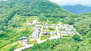 도솔로 벚꽃길을 지나 만나는 산속 마을봉강면 소재지를 지나 저곡마을 방향으로 차를 몰다 보면, 길 이름부터 특별한 도로 하나가 나온다. 바로 도솔로다. 봄이면 도솔로 양쪽으로 늘어선 벚나무들이 일제히 꽃을 터뜨린다. 바람에 흩날리는 벚꽃잎은 눈처럼 쏟아져 내리고, 차창 밖 풍경은 영화 속 한 장면처럼 펼쳐진다.그 길에서 만나는 부저농원을 지나서 구불구불 이어지는 오르막길을 따라 700미터쯤 오르면 해발 400미터 산속에 마을 하나가 나타난다. 사방이 산으로 둘러싸여 아늑하고 포근한 자리에, 꽃과 잔디가 있는 전원주택들이 질서 정연하