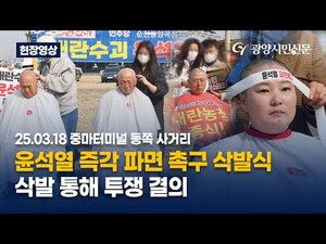 더불어민주당 순천·광양·곡성·구례을 지역위원회와 전국농민회총연맹 광양시농민회가 지난 18일 중마터미널 동쪽 사거리에서 윤석열 즉각 파면 촉구 삭발식을 진행했습니다. 삭발식에는 민주당 지역위 관계자와 광양시의원, 광양시농민회 관계자, 시민 등 100여명이 참석했으며 강정일 도의원, 조현옥·김보라 시의원, 유영준 광양시농민회장이 삭발과 함께 윤석열 즉각 파면을 촉구했는데요. 그 현장 광양시민신문이 다녀왔습니다.