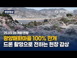 광양매화마을 개화 현황 궁금하시죠! 광양시민신문에서 직접 촬영한 드론영상으로 전해드리는 2025년 3월 26일(화) 기준 광양매화마을의 만개 현황! 현재 100% 만개 상태로, 꽃들이 절정에 달했지만 일부 꽃이 떨어지고 있는 곳도 있어 서둘러 방문하셔야 합니다. 매화축제가 끝나고 만개한 아름다운 광양매화마을 함께 감상하시죠.