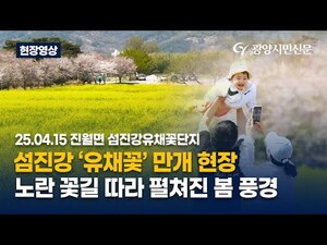 섬진강 유채꽃밭이 연둣빛 버드나무, 주황색 아치형 다리와 어우러져 샛노란 꽃물결을 이루고 있습니다. 마치 한 폭의 유화같은 풍경이 펼쳐지는데요. 진월면 오사리, 섬진강 둔치에 조성된 2만㎡ 규모의 유채꽃밭은 매년 봄마다 벚꽃과 버드나무, 그리고 주황색 아치형 다리와 어우러져 특별한 봄날의 장면을 만들어냅니다. 함께 감상하시죠!