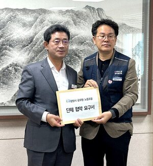 광양시청 공무원노동조합(위원장 박성이)이 지난 17일 광양시청 만남실에서 정인화 광양시장에게 2025년도 단체교섭 요구서를 전달했다.광양시공무원노동조합은 2015년 6월 12일 설립 신고를 완료했으며, 현재 가입대상 1286명 중 1182명(92%)이 가입해 있다. 상급단체는 한국노총 공무원노동조합연맹이다.이번 요구서는 전문과 본안 123개 조, 부칙 5개 조 총 128개 조항으로 구성됐으며, 노동조합활동 보장, 인사제도 개선, 근무조건 향상, 후생복지 확대 등의 내용을 담았다.주요 교섭 내용은 △인사제도개선위원회 설치·운영 △대체