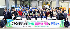 진상농협(조합장 임대영)이 지난 17일 ‘애호박공선출하회’의 첫 출하를 기념하는 행사를 열고 지역 애호박의 안정적 유통과 농가 소득향상의 본격적인 출발을 알렸다. 이날 행사에는 지역 내 애호박 재배 농가와 농협 관계자 등 20여 명이 참석했다.임대영 조합장은 기념사에서 “전국 최고 품질의 애호박 생산을 목표로 공동선별을 철저히 추진해 경쟁력을 높이겠다”며 “안정적인 시장 유통 기반을 마련하고 농가와 함께 소비자에게 신뢰받는 농산물을 생산하겠다”고 강조했다.참석자들은 첫 출하를 기념해 상징적 첫 물량 전달 세리머니를 진행했으며, 올해