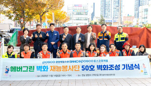 광양제철소(소장 고재윤) 산하 에버그린 벽화 재능봉사단이 지난 14일 중마동에 있는 중마사랑요양원에서 50번째 벽화의 완성을 기념하는 행사를 가졌다.행사에는 최대원 광양시의회 의장, 서영배·백성호 광양시의원, 정경수 광양 YMCA 이사장, 하태우 광양시 주민복지과장과 에버그린 벽화 재능봉사단원을 비롯한 약 50명이 참석했다.벽화 그리기라는 재능을 살려 세상을 아름답게 가꿔가겠다는 뜻이 모여 2019년 창단된 에버그린 벽화 재능봉사단은 포스코 직원과 가족을 주축으로 SNNC 직원, 광양시민을 포함한 37명이 활동하고 있는 봉사단으로