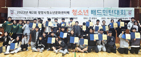 광양시청소년문화센터(광양YMCA 위탁운영)가 지난 25일 청소년문화센터 체육관에서 지역 초·중·고 청소년을 대상으로 제2회 광양시청소년문화센터배 청소년배드민턴대회를 성황리에 마무리했다.