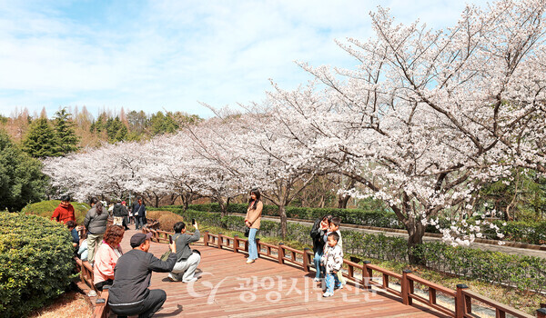 제10회 광양벚꽃문화축제가 지난 28일부터 30일까지 금호동 조각공원 일원에서 열린 가운데 활짝 피어난 금호동 백운대길 벚꽃을 찾아 시민들의 발길이 이어졌다. 백운대 벚꽃은 이번 주 절정에 이를 것으로 보인다.