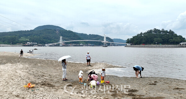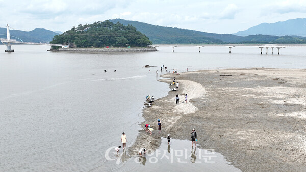 평년보다 5~6일 정도 빨리 시작된 장마가 잠시 소강상태를 보인 지난 휴일 많은 시민이 배알도 수변공원을 찾아 아이들과 함께 갯벌 체험과 물놀이를 즐겼다. 기상청은 남해상으로 물러난 장마전선이 24일쯤 다시 북상해 남부지방에 비가 내리겠다고 예보했다.