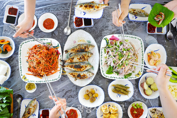 오는 12일 개막하는 제24회 광양전어축제를 앞두고 미리 망덕포구를 찾은 시민들이 노릇하게 구운 전어와 신선한 회, 매콤새콤한 회무침으로 차려진 상 앞에서 분주한 손길을 보이고 있다.