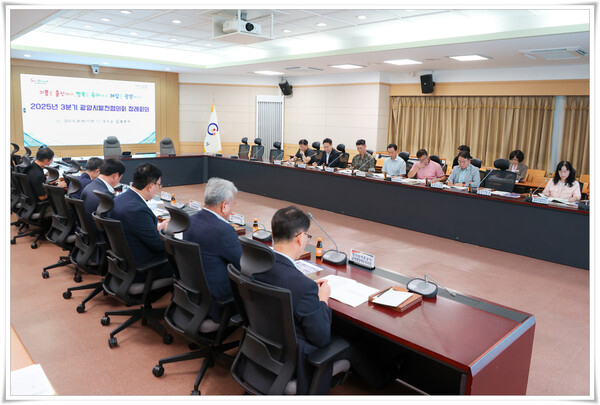 광양시는 지난달 28일 시청 창의실에서 2025년 3분기 광양시발전협의회 정례회의를 개최했다. 이날 회의에는 협의회 회원 기관인 공공기관, 군부대, 공공 단체, 기업체 등 관계자들이 참석해 지역 발전을 위한 주요 현안을 공유하고 협력 방안을 논의했다.