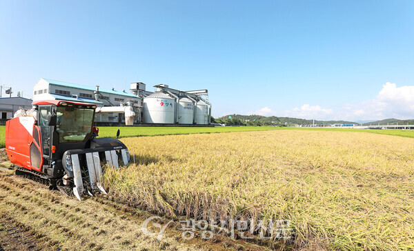 광양농협이 지난 5일 세풍 간척지 수도작 계약재배단지에서 올해 첫 벼베기를 시작하며 본격적인 수확 철을 열었다. 이날 수확된 벼는 광양농협 대표 브랜드인 ‘하늘이 내린 광양쌀’로 가공돼 추석을 앞두고 시중에 공급될 예정이다.