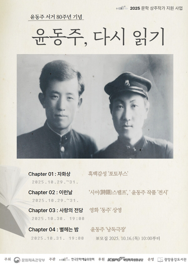 김현숙 도서관과장은 “윤동주 서거 80주년을 맞아 시민이 직접 참여하고 체험할 수 있는 행사를 기획했다”며 “시인의 언어와 정신을 오늘의 감성으로 다시 만나는 뜻깊은 시간이 되길 기대한다. 많은 시민의 관심과 참여를 부탁드린다”고 말했다.