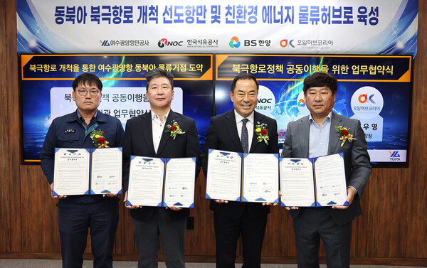 여수광양항만공사(사장 직무대행 황학범, 이하 ‘공사’)가 지난 22일 공사 본사에서 한국석유공사, BS한양, 오일허브코리아여수와 '북극항로 개척 정책과제 공동 이행을 위한 업무협약'을 체결했다.