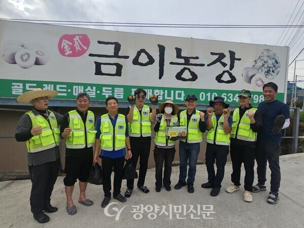 새마을교통봉사대 광양시지대(대장 홍두기)는 지난 19일 봉강면 금이농장에서 ‘사랑의 농촌 일손돕기’ 봉사활동을 펼쳤다.