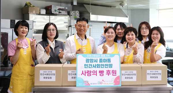 중마동 민간사회안전망(회장 신용식)이 지난 23일 광양커뮤니티센터에서 지역사회를 위한 나눔실천의 일환으로 (재)광양시사랑나눔복지재단(이사장 김재경)에 단팥빵 250개를 전달했다.