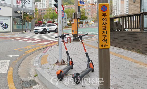 하지만 시는 지난해 10월 관련 조례를 제정했음에도 지역 내 공유 킥보드 주차 구역은 1년이 지난 지금까지도 지정되지 않아, 교차로·횡단보도·보도 등에서 무단 주차가 잇따르며 보행 불편과 안전 문제가 발생하고 있다.