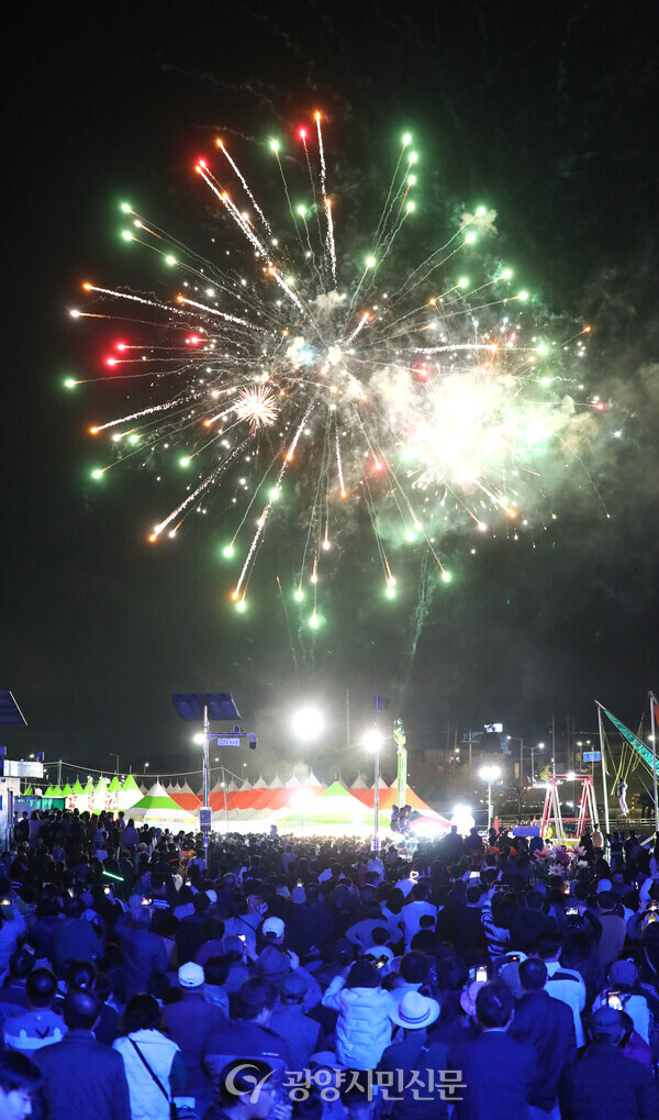 축제 첫날에는 신명나는 농악 한마당으로 막을 올리고, 광양 원님 행차 재현 퍼레이드, 외줄타기 공연, 광양숯불문화 기획무대 ‘미디어 대북공연’ 등 다채로운 프로그램이 이어졌다. 또한 개막식과 함께 불꽃놀이와 축하공연이 펼쳐지며 축제의 서막을 장식했다.