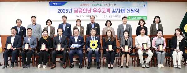 동광양농협(조합장 이돈성)이 지난 27일 본점 소회의실에서 ‘제10회 금융의 날’을 맞아 농협을 꾸준히 이용해온 우수고객 8명에게 감사패를 전달했다.