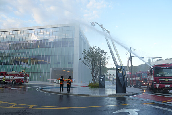 이날 훈련은 지진으로 인한 건물붕괴 및 화재발생한 상황을 가정한 가운데 진행됐다. 소방서는 초기 대응부터 재난 현장 복구 단계까지 실전과 같은 내용의 훈련을 소화했다.