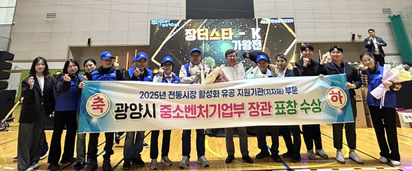 광양시가 지역 전통시장과 상점가의 경쟁력 강화를 위해 시설 현대화, 특성화시장 육성, 골목형상점가 지정 등 다양한 정책을 적극 추진한 성과를 인정받아 ‘2025년 전통시장 및 상점가 활성화 유공’으로 중소벤처기업부 장관 표창을 수상했다.
