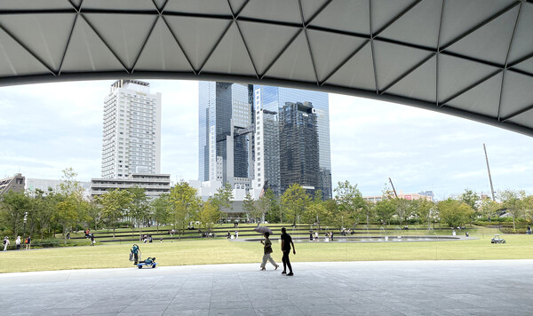 공원과 상업시설을 연결하는 120m 규모의 은빛 대형 지붕은 건축계의 노벨상이라 불리는 프리커츠상을 수상한 세계적인 건축가 유닛 ‘SANAA(사나)’가 설계했다. 지붕 아래 약 1500㎡의 이벤트 공간과 전면 약 4천㎡ 잔디 광장인 ‘우메키타 공원’은 최대 1만명 규모 행사를 수용할 수 있다.