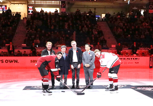‘퍽 드랍(Puck Drop)’은 캐나다 아이스하키 경기에서 가장 상징적인 개막 의식으로, 경기의 시작을 알리는 동시에 귀빈에게만 주어지는 명예로운 세리머니다. 양 도시 시장이 함께 퍽 드랍을 진행한 이번 장면은 국제우호도시로서의 첫 협력과 우정을 공식적으로 알리는 뜻깊은 순간으로, 경기장을 가득 메운 관중의 박수와 환호 속에 진행됐다.