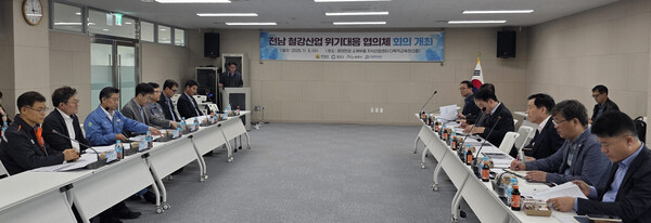 전라남도가 5일 광양만권소재부품지식산업센터에서 ‘전남 철강산업 위기대응 협의체’ 4차 회의를 열어 산업위기 선제대응지역 지정 추진 경과를 공유하며 지역 철강산업 위기 대응전략을 논의했다.