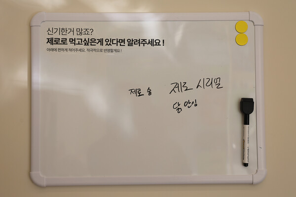 매장 한쪽에는 ‘원하는 제품을 적어두는 보드’가 설치되어 있어, 찾는 상품이 없을 경우 소비자가 직접 제안하면 본사와 협의해 추가 입고가 가능하다.