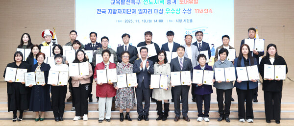 광양시가 지난 10일 시청 시민홀에서 11월 시정발전 유공 시민 표창 수여식을 진행했다.