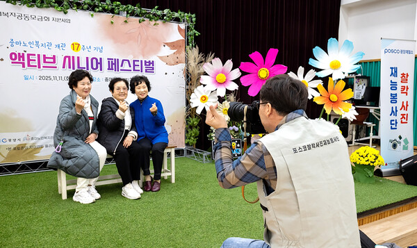 광양제철소(소장 고재윤) 재능봉사단이 11일 광양시 중마노인복지관에서 열린 ‘액티브 시니어 페스티벌’에 참여하며 지역 어르신들에게 기쁨과 축제의 시간을 선사했다.