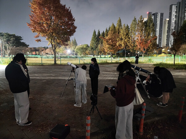 저녁에는 숙소 근처에서 굴절망원경 2대와 스마트망원경 1대를 활용해 달과 토성을 관측하는 특별한 시간을 가졌다. 학생들은 실제 천체를 눈으로 관찰하며 교과서에서만 접하던 우주의 신비를 생생하게 느낄 수 있었다.