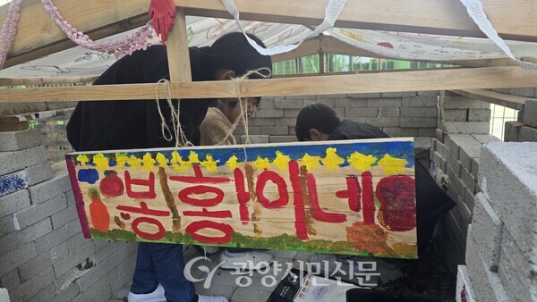 ‘해야’는 매주 월요일 2교시마다 ‘벽돌로 만드는 우리집, 텃밭으로 가꾸는 작은 마을’이라는 주제로 청소년들과 만나고 있다. 이 활동은 아이들이 직접 벽돌로 집을 짓고, 지붕을 꾸미며, 텃밭을 가꾸는 전 과정을 통해 협동심과 창의성을 기를 수 있도록 구성됐다.