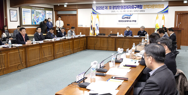 광양만권경제자유구역청(청장 구충곤, 이하 광양경제청)이 지난 13일 상황실에서 ‘2025년 제2회 정책자문위원회’를 개최해 2025년 주요업무 추진현황을 보고하고, 투자유치 전략 및 개발사업의 발전 방안에 대해 민간 전문가들과 심도 있는 논의를 진행했다.