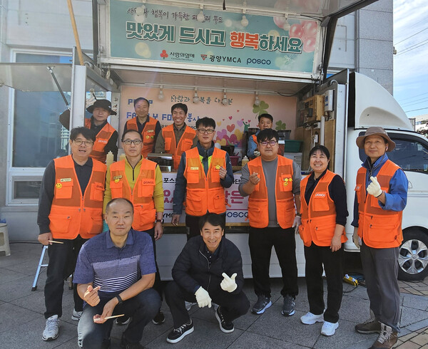 광양시청소년문화센터(광양 YMCA 위탁 운영)가 지난 14일 센터 앞 광장에서 포스코아름드리나눔푸드봉사단과 함께 ‘즐거운 라면DAY’를 진행했다.
