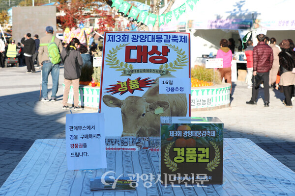 백운산 억불봉에서 흘러내린 풍부한 수원과 비옥한 토양, 전국 최고 수준의 일조량을 바탕으로 생산되는 진상 대봉감은 광양시 전체 생산량의 절반 이상을 차지하는 지역 대표 특산물이다. 높은 당도와 우수한 품질을 자랑하지만 독자적 브랜드가 없어 상당량이 타 지역으로 유통되는 실정이었다. 이에 지역 농가들은 2년 전부터 자체 홍보를 위한 축제를 열어 올해로 세 번째를 맞았다.