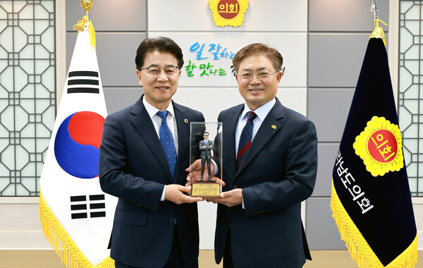 김태균 전남도의회 의장이 ‘제4회 전라남도 상인의 날’을 맞아 ‘제1회 자랑스런 우리 도의원상’을 수상했다.