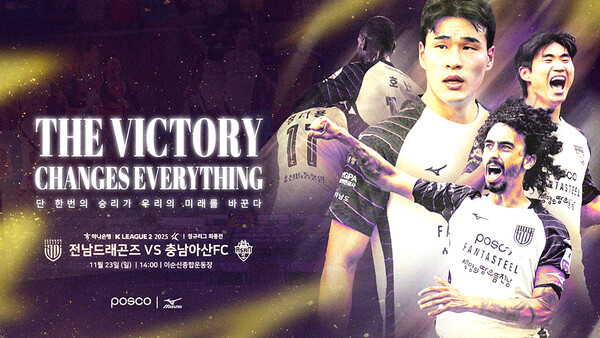 과연 정규리그 최종전에서 전남드래곤즈가 충남아산FC를 꺾고 자력으로 준플레이오프에 진출해, 팬들의 응원에 보답하며 K리그1 승격을 향한 교두보를 마련할 수 있을지 귀추가 주목된다.
