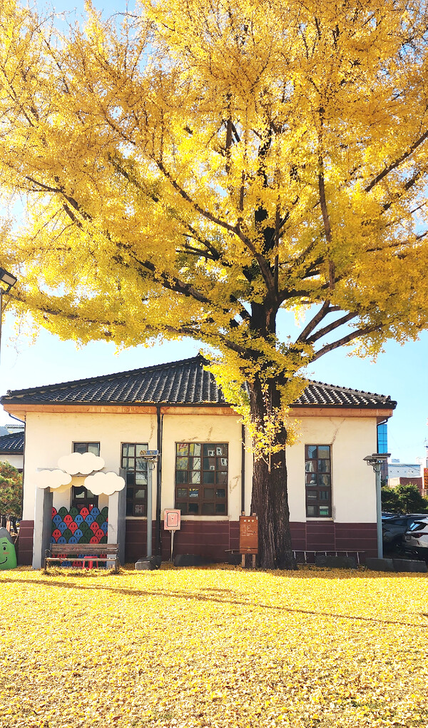광양의 역사를 오롯이 품고 있는 광양역사문화관이 황금빛 은행잎으로 찬란하게 물들며 늦가을 정취의 절정을 맞고 있다.