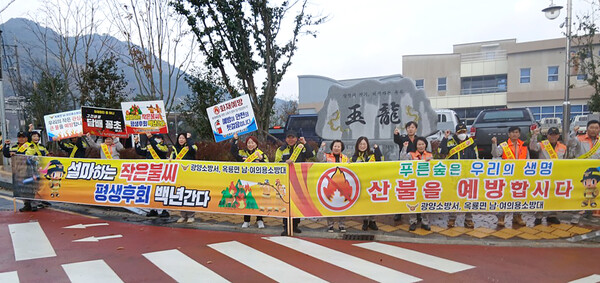 옥룡면이 산불조심 기간을 맞아 지난 25일 주요 도로변에서 산불 예방 캠페인을 실시했다.
