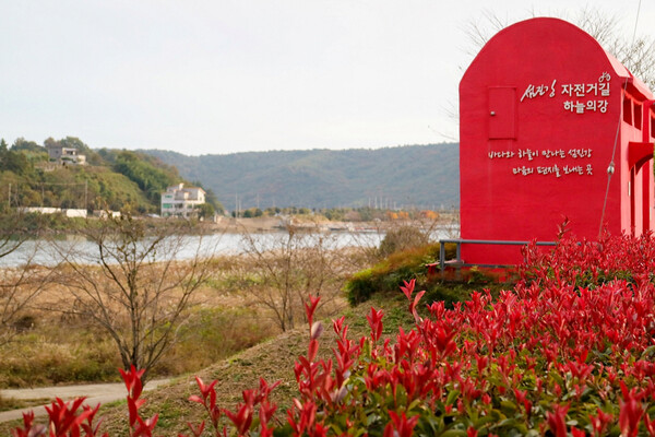 ‘바다와 하늘이 만나는 섬진강, 마음의 편지를 보내는 곳’이라는 문구가 적힌 빨간 우체통 형상의 화장실은 몸과 마음의 근심을 모두 내려놓는 섬진강로드의 감성을 완성한다.